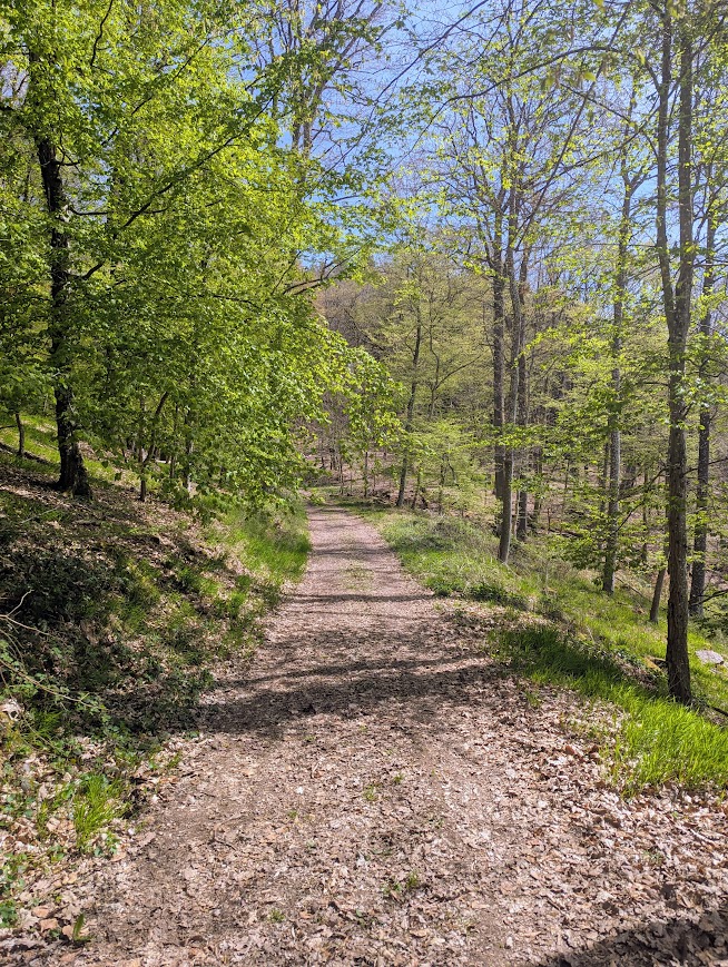 Es ist eine schlichte, aber nichtsdestotrotz schöne Tour. Sie führt beinahe ausschließlich durch Wald, allerdings kann man hier und da aus dem Wald heraustreten und in Richtung eines von Hügeln abgeriegelten Horizontes blicken.