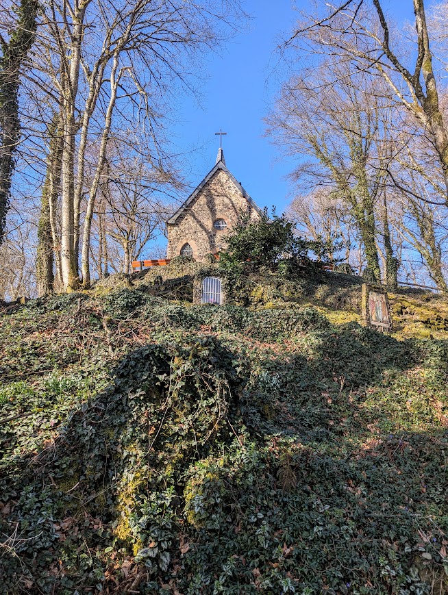 Die Kapelle auf Höchsten, an der ich zu Beginn vorüberlaufe, ist hier in der Gegend in viele Wanderwege integriert.