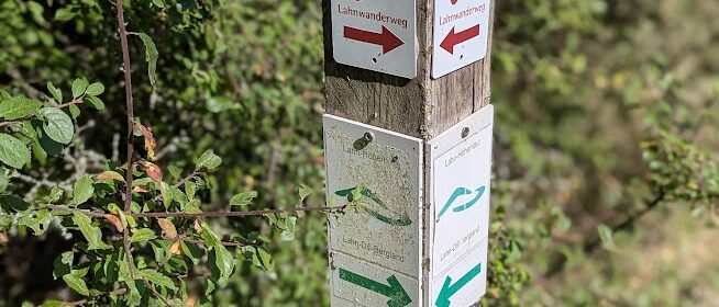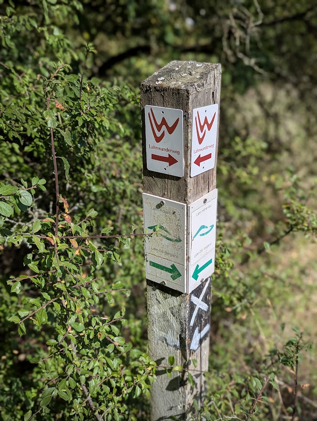Oben das Symbol des Lahnwanderweges, auf dem wir diesmal unterwegs sind.