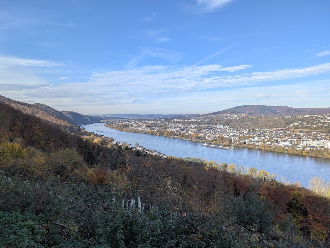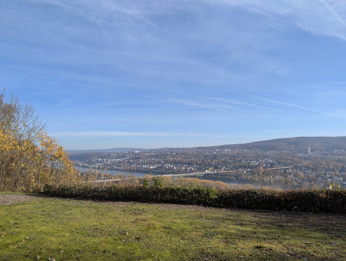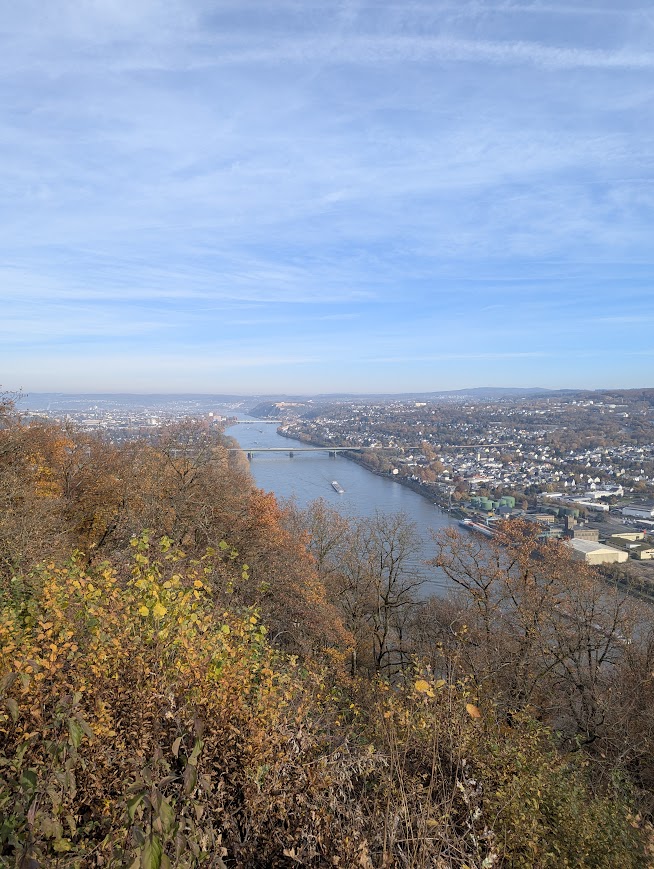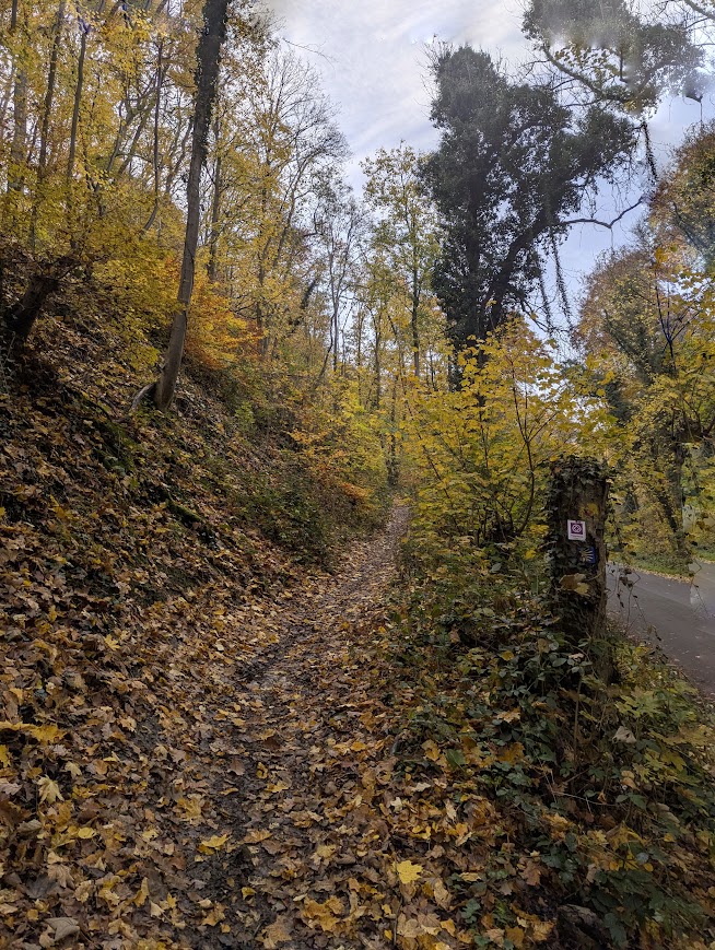 Der Etappe geht ein rund 3 Kilometer langer Zuweg vom Koblenzer Hauptbahnhof aus voraus. Der Lärm wird aber am Stadtrand von einer Stille abgelöst, die sich mit jedem Schritt mehr manifestiert. Wir stapfen einen schmalen, von Hekatomben von Laub übersäten Pfad hinauf.