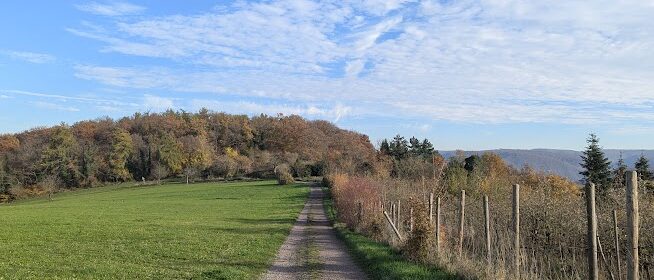 Ein großer Teil der Wanderung führt durch Wald, hier und da unterbrochen oder ergänzt von Fernblicken, gegen Ende gibt es dann aber auch den einen oder anderen Wiesenpfad und offeneres Gelände.