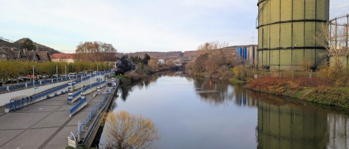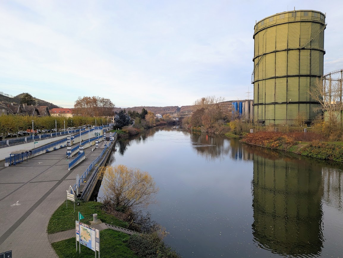 Wanderung der Kontraste – am Ende laufe ich vier Kilometer durch Stadtgefilde und lande schließlich am Saarufer mit Blick auf den Gasometer der Völklinger Hütte