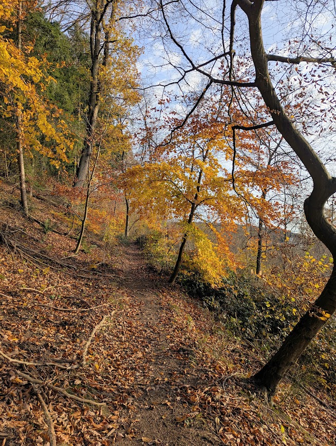Am Rande von Ludweiler erwartet mich ein verzweigtes Geflecht von Waldpfaden, auf denen ich mich sehr rasch vom Lärm entferne. Nicht lange und es kommt mir vor, als hätte ich den Zugang zu einer geheimnisvollen Elfenlandschaft entdeckt. Nach und nach nähere ich mich nun dem Werbelner Geschichte-Weg, und die rund 6 Kilometer, die ich auf diesem zurücklege, sind die schönsten der gesamten Wanderung.