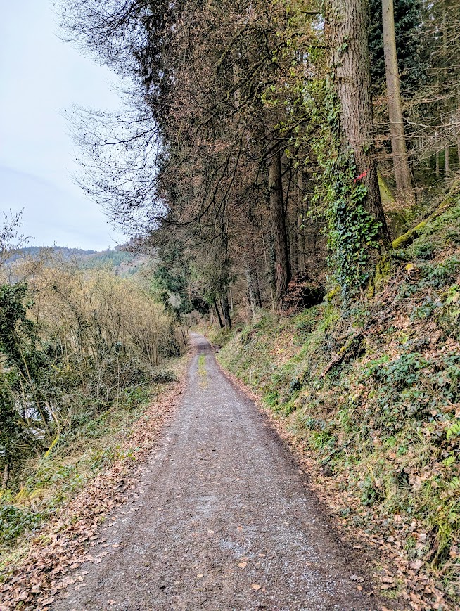 Auf der Höhe von Lindach, einem weiteren Stadtteil von Eberbach. Auf der Lindacher Flussseite endet der Leinpfad ein paar hundert Meter vor Zwingenberg, so dass ich dort dann an der Landstraße entlang weiterlaufen müsste oder vielmehr auf der Landstraße. Hier dagegen habe ich weiterhin einen breiten Waldpfad unter den Füßen, später dann einen Asphaltweg.
