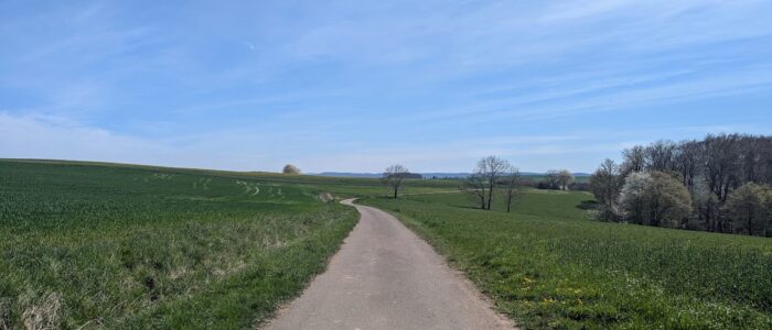 Da ist wieder diese besondere Form von Geduld, die das Gehen über längere Distanzen so oft mit sich bringt. Oft denke ich nur von Augenblick zu Augenblick, von Schritt zu Schritt. Lediglich im Hintergrund, dafür aber unverrückbar, ist da der Gedanke an das Zwischenziel Potzberg.