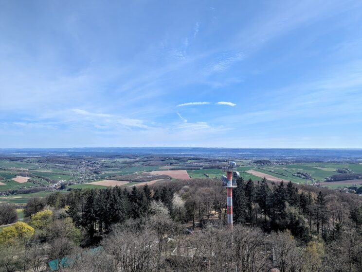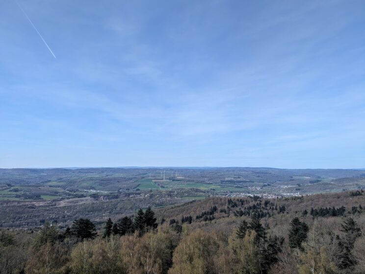 Blick vom Potzberg-Aussichtsturm. 173 Stufen führen zur Aussichtsplattform hinauf.
