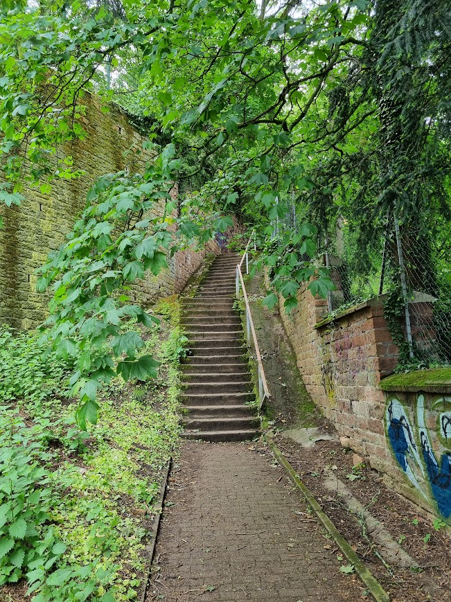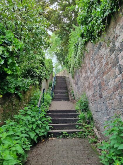 Treppe in der Nähe des Adenauerplatzes. Hier verläuft der Blütenweg.