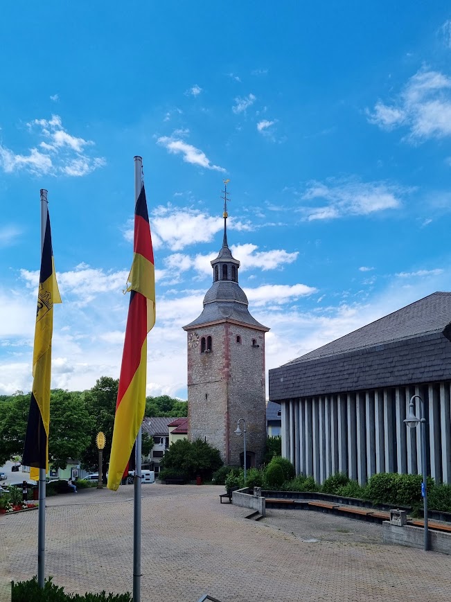 Blick auf Hardheim mit der Kirche St. Alban