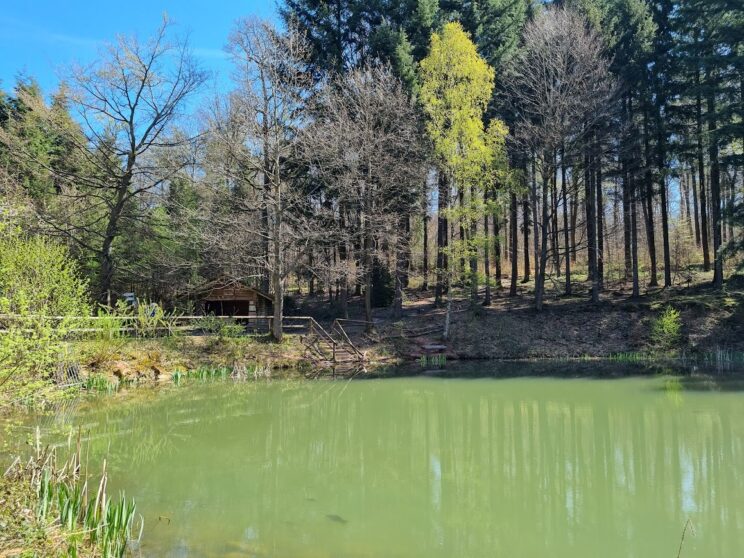 Am Katzenbuckelsee in der Nähe von Waldbrunn. Hier befand sich bis 1974 ein Steinbruch.
