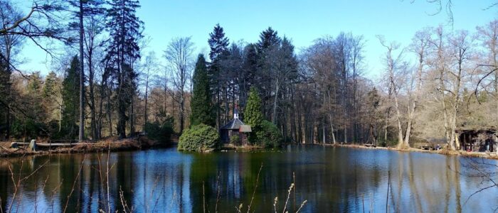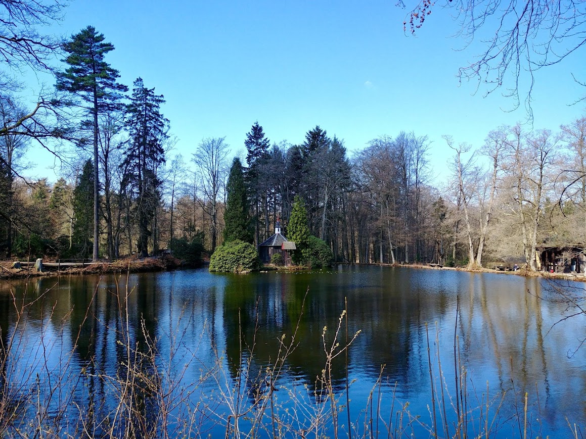Heutzutage gibt es hier ein Tiergehege mit Wildschweinen, Wisenten usw. Der See ist so etwas wie eine Ruheoase für den Blick.